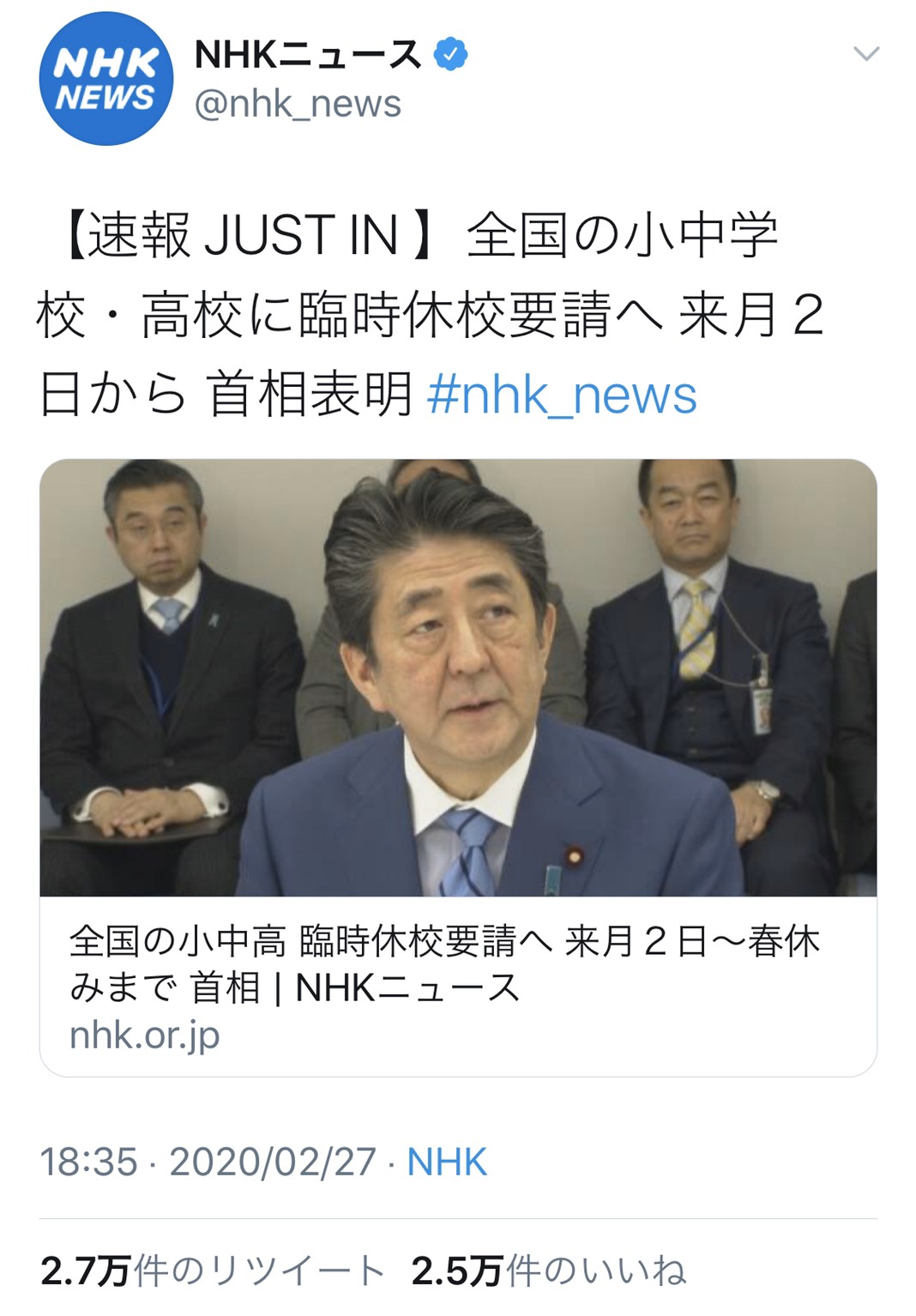 全国の小中学校・高校に、臨時休校要請をしたというニュース。もう誰もが知っていますし、今はこの話題しか出てこないですよね。