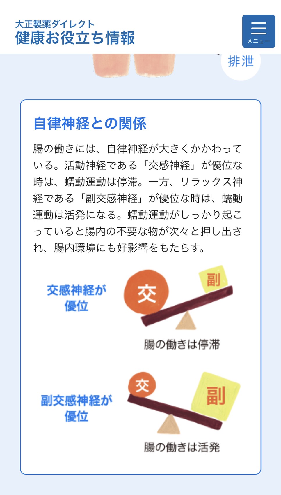 もう一度整理すると、胃腸は緊張状態ではしっかり働かず、リラックスしている時に活動するように出来ている。( ここテストに出ます )