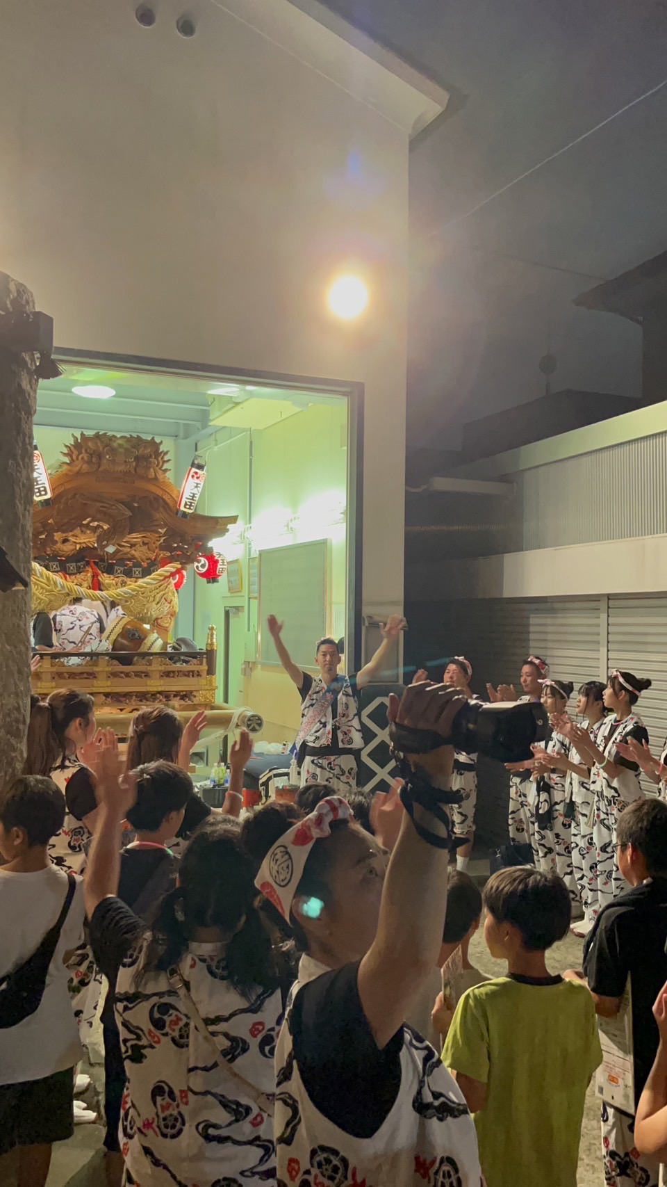 猛暑に次ぐ猛暑。若衆や後ろを押すメンバーを中心に、疲労困憊な中みんな自分のからだにムチを打って頑張ってくれたお陰で、ほとんどコースもカットすることなく曳行することが出来ました。