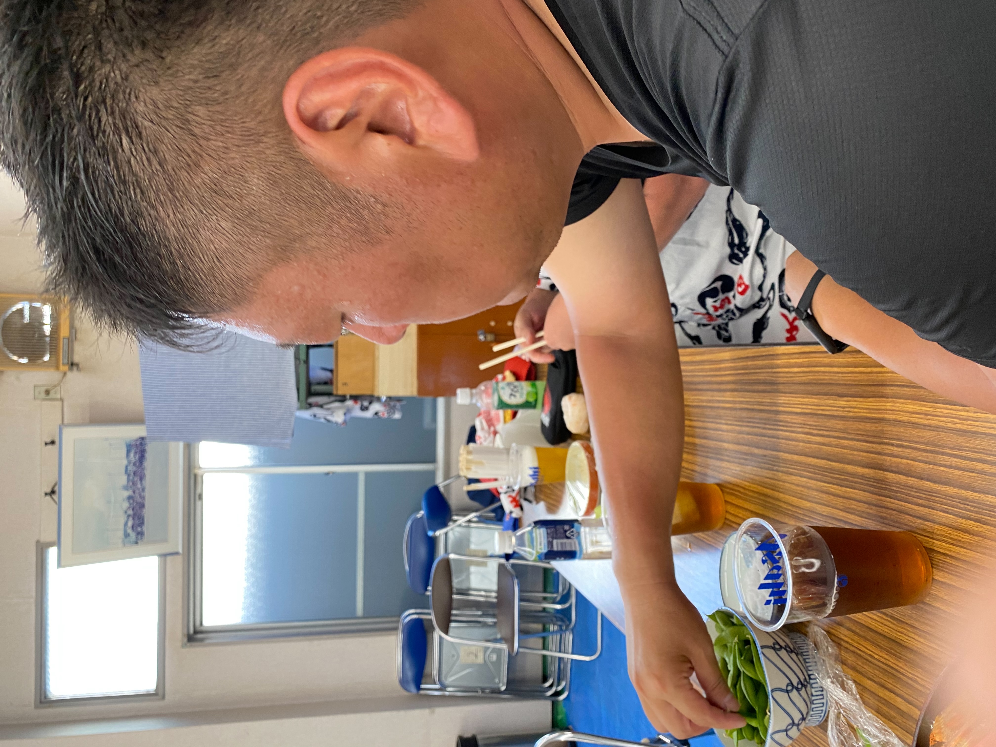 町元のおじき先輩は暑すぎてご飯がのどを通らず、枝豆ばかり食べていました。