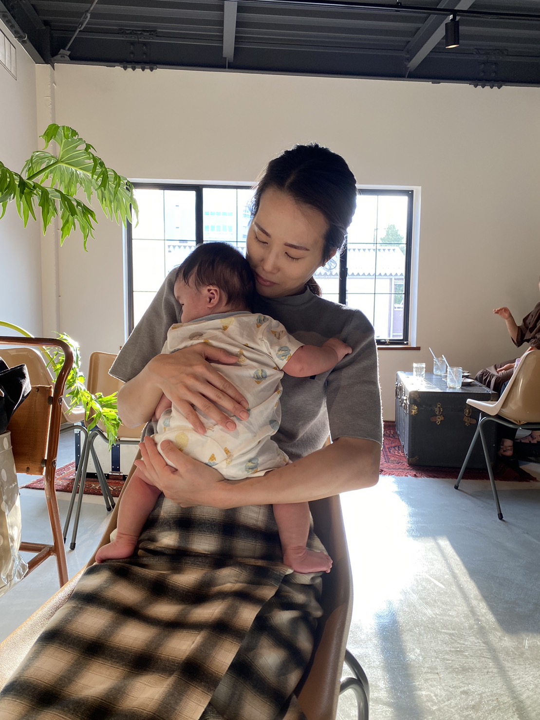 飲食は2階でおこなうため、ベビーカーは車に置いて上にあがりました。