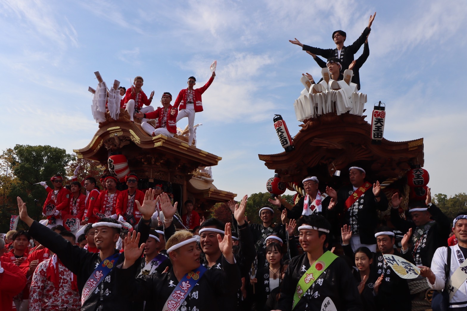 今回で言えばボクたちが昔から好きで見に行っていた河南町の寛弘寺さん、そして天王田と兄弟だんじりに当たる西宮市の生瀬さんと一緒にだんじりを並べられたこと、記念撮影をすることが出来たのが個人的には一番のハイライトだったなぁと。