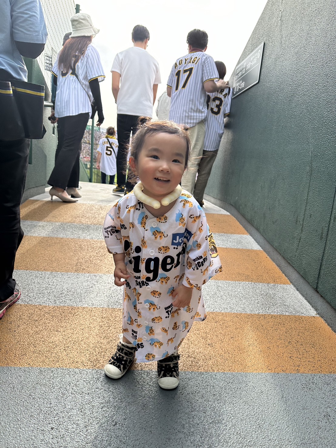 アンパンマンよりA・R・EなTORACOとしてテレビにも載せていいただいた2歳の娘は、すでに球場観戦7回目。0歳10ヶ月の息子は今回は初めてだったので、甲子園球場デビュー。