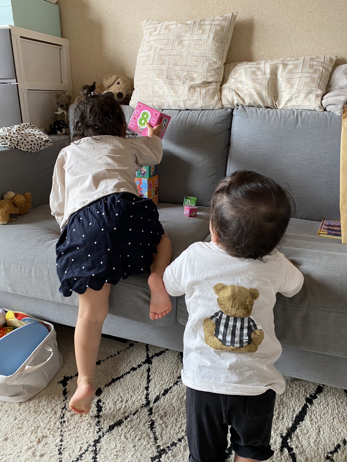 仲が良いところも多々ありますが、今まで独り占めしてきたおもちゃたちを一緒に使うというのはまだ慣れていない様子。