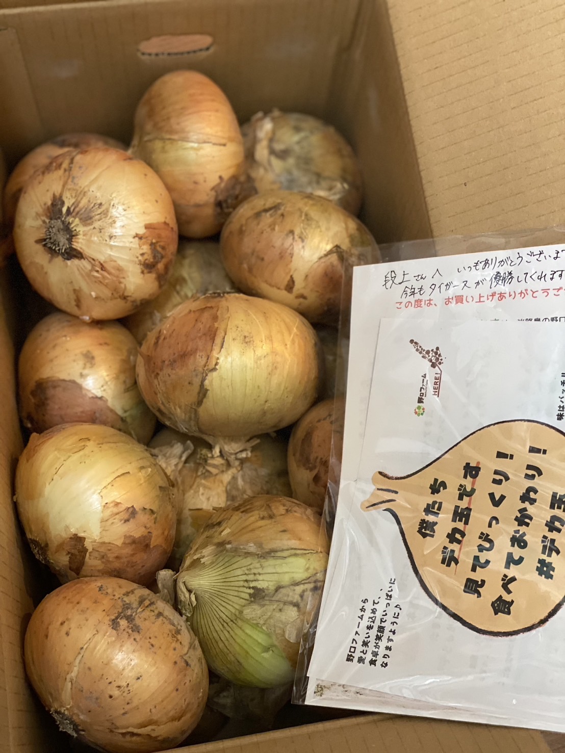10キロって本来なかなかの量ですが、「 えー!!おっきーー!!! 」と皆さまに驚かれるぐらい、今年の新玉ねぎはより一層一つ一つが大きかったです。