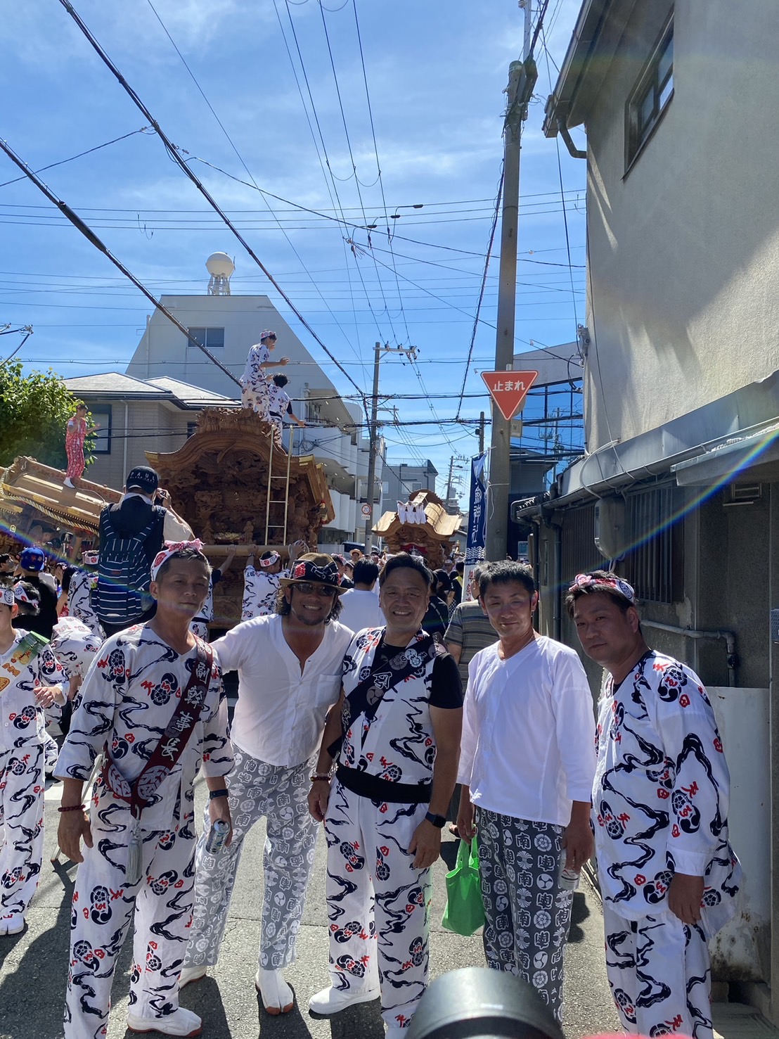 打ち別れがおこなわれる少し前、だんじり裏にまわったらだんじりブロガーの政池さんが昭和47年会の先輩方の写真を撮られており、その後ろでボクも撮らせていただきました。