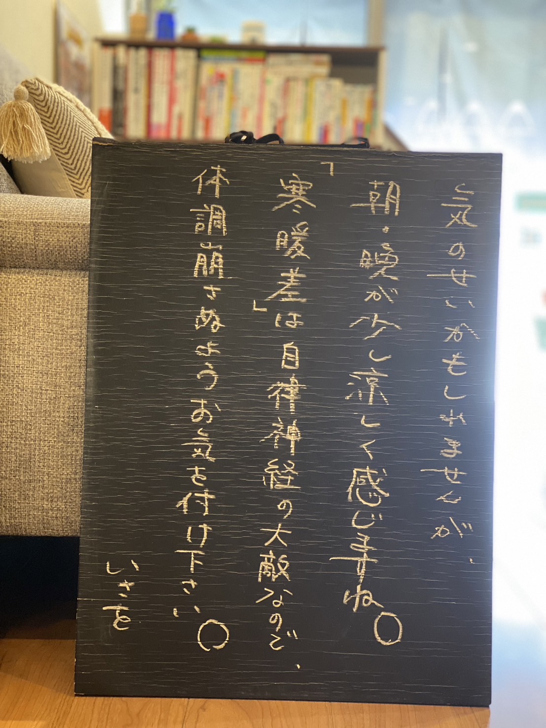 季節が変わろうしている時期は体調を崩しやすいので、おからだに気を付けてご無理なく過ごして下さいね^^