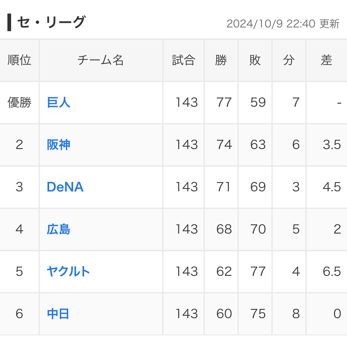 他の3チームにも優勝の可能性がありましたが、今年の巨人には一歩及ばずという感じでしたね。