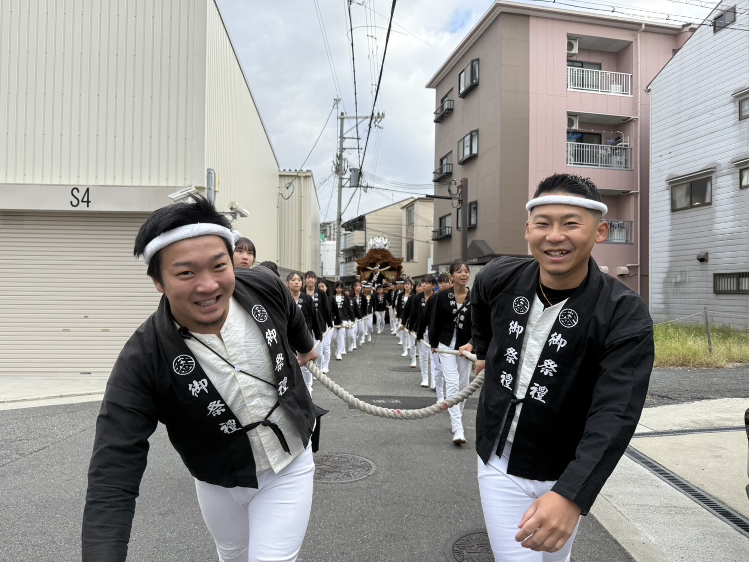 そんな中でも天王田のだんじりメンバーは終始笑顔で、綱もしっかり曳いて、各々の役割を果たしながらもみんな楽しそうでした。