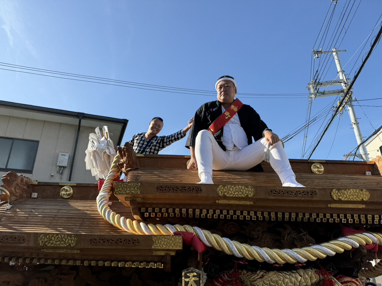 ▼最後の曳行は町元・曳行責任者・副曳行責任者の3人で乗らせていただきました