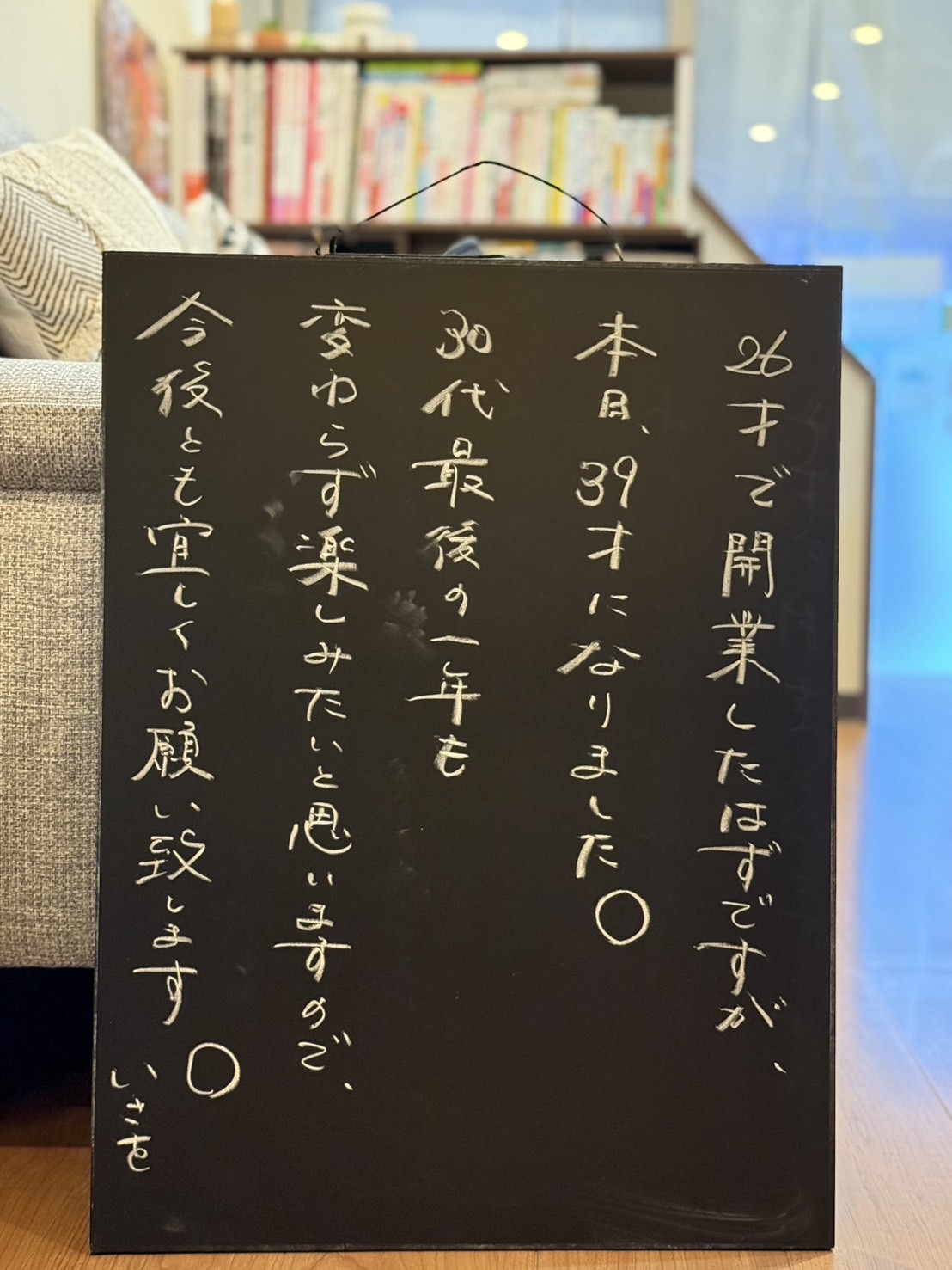 26歳で鍼灸整骨院をオープンしたはずなのですが、気付いたら本日で39歳になってしまいました。