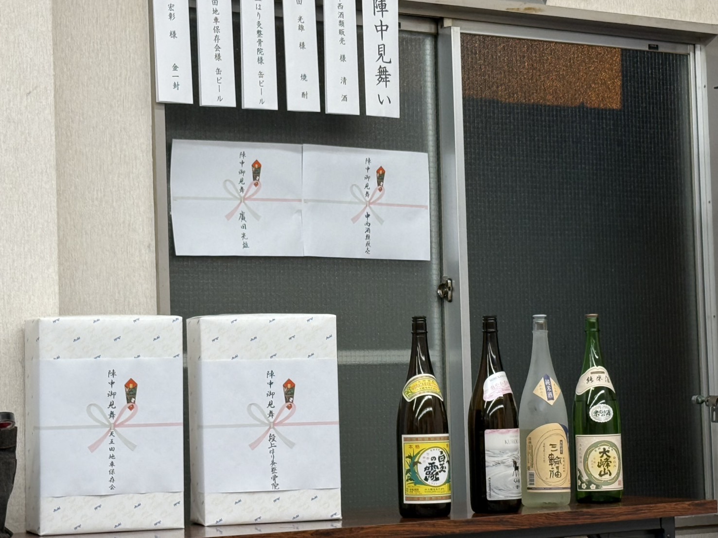 あ、もちろん、地域でお仕事をさせていただていている身として今年も陣中見舞いとして缶ビール1ケースをお渡しさせていただきました。