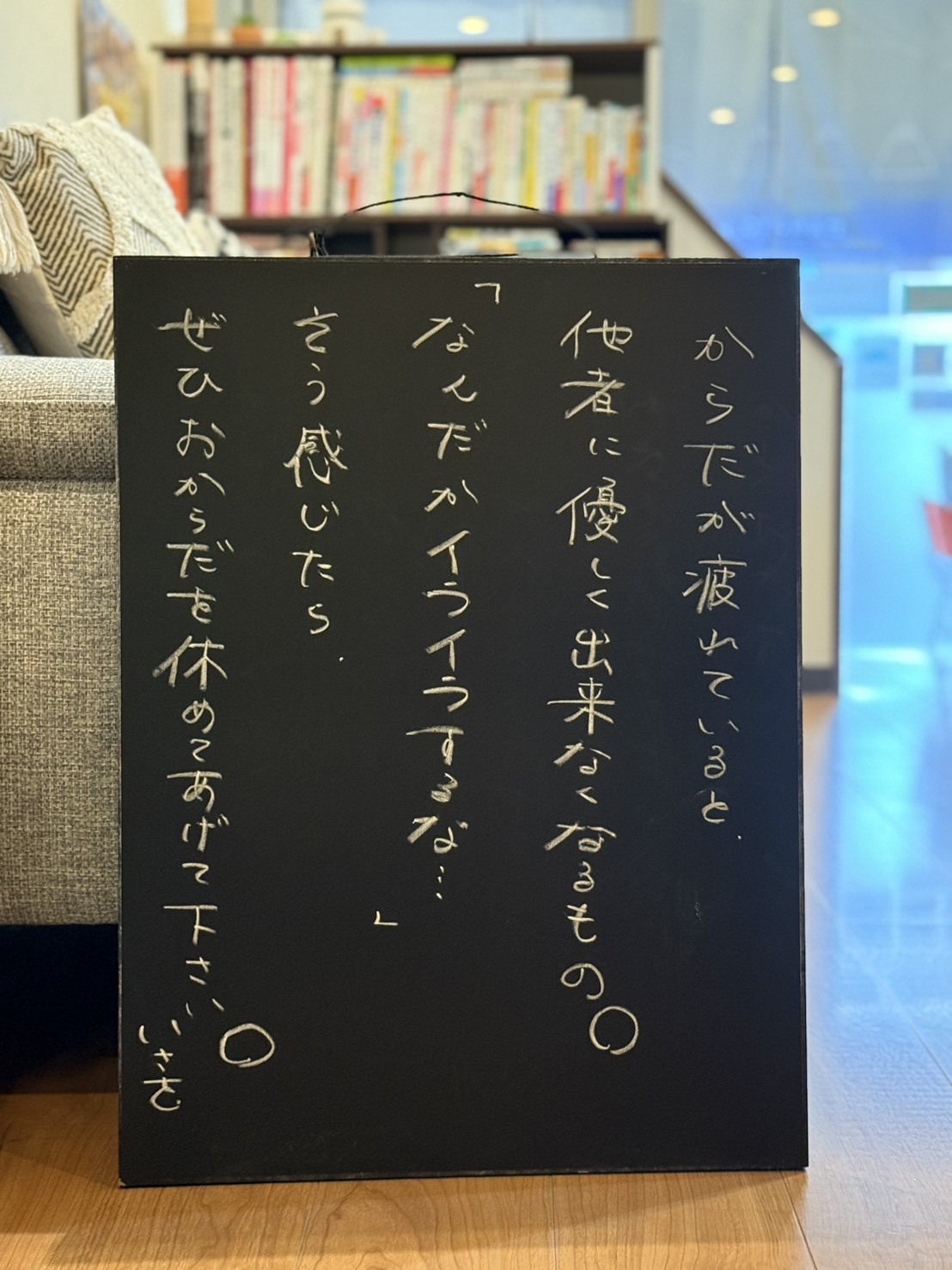 イライラしたり人に強く当たっているなと感じたら、少し休むようにして下さいね^^