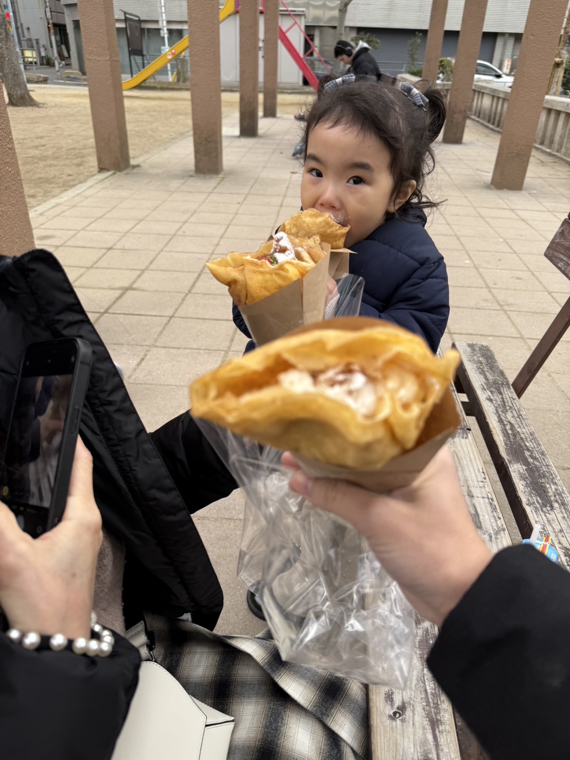 寒空の中での公園遊びと、クレープと。