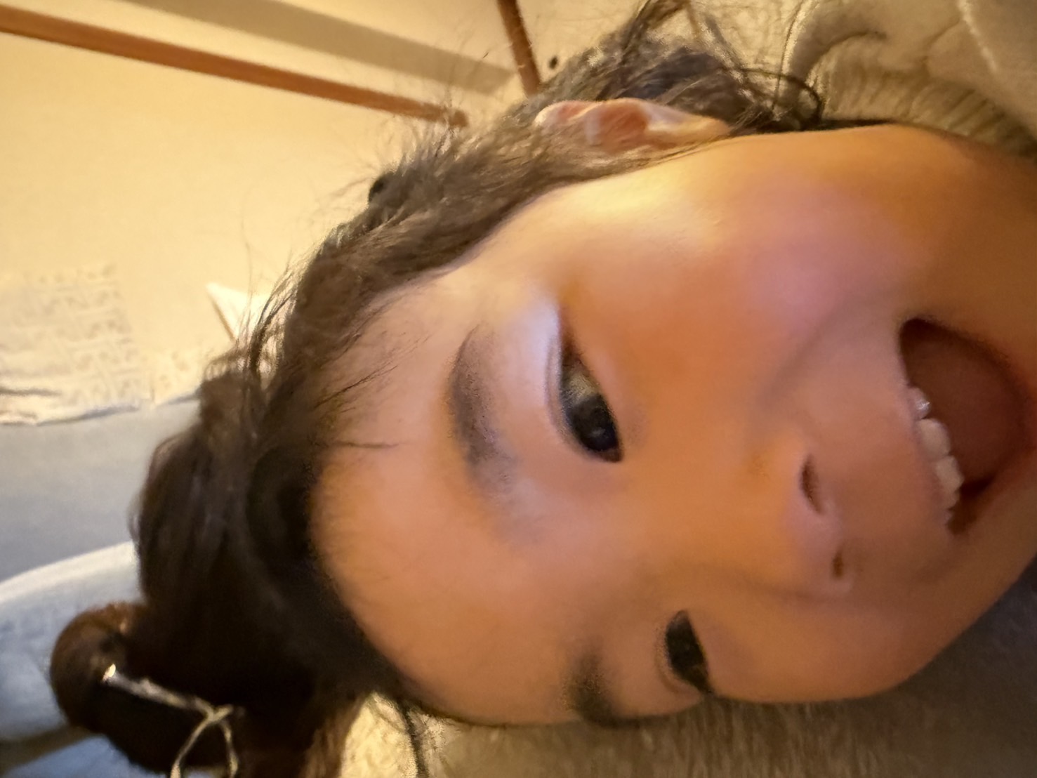 カメラで妻と息子を撮影していたら娘は顔を近付けてくるし。笑