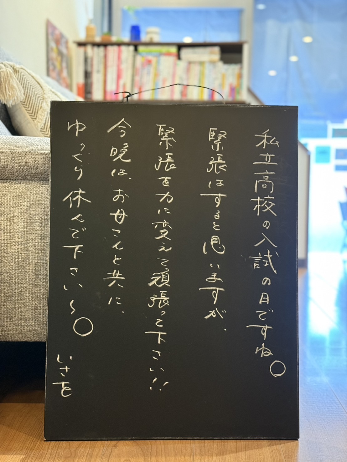 私立が終わっても公立の受験が続くという方も多いかと思いますので、こどもも親も無理をしない、いや、試験の辺りだけは"無理を出来るように”適度休み、心身のリフレッシュの時間を取っていただきたいなと感じます。