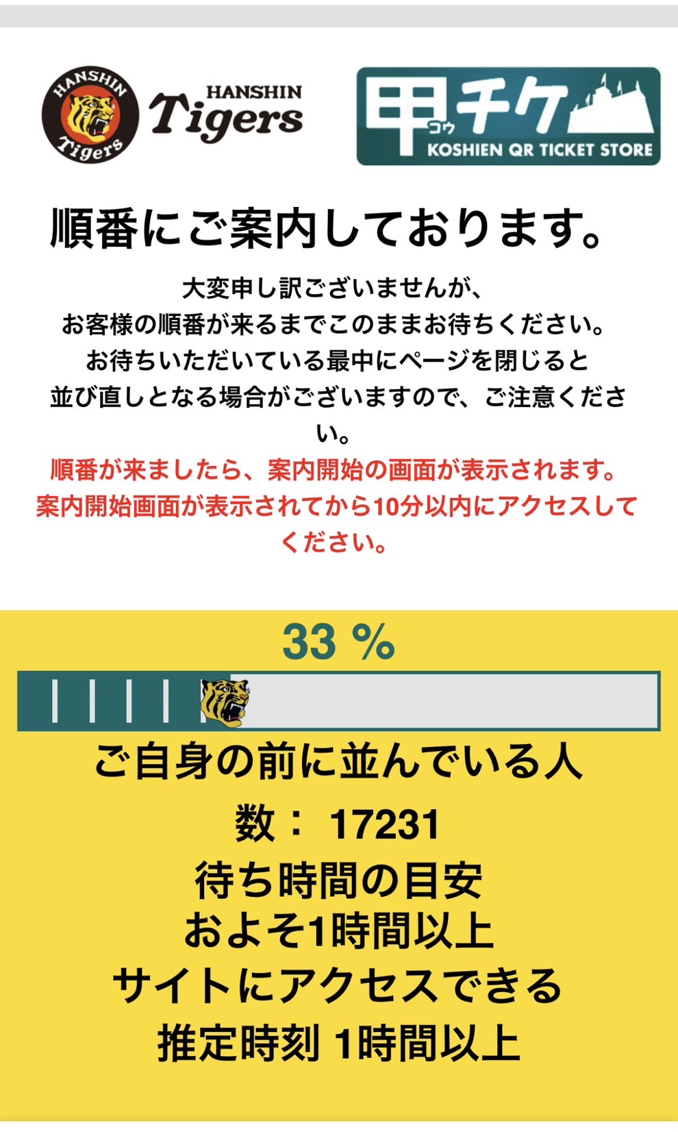 日本一の人気球団・阪神タイガースのチケット争奪戦と、仕様変更のお話。