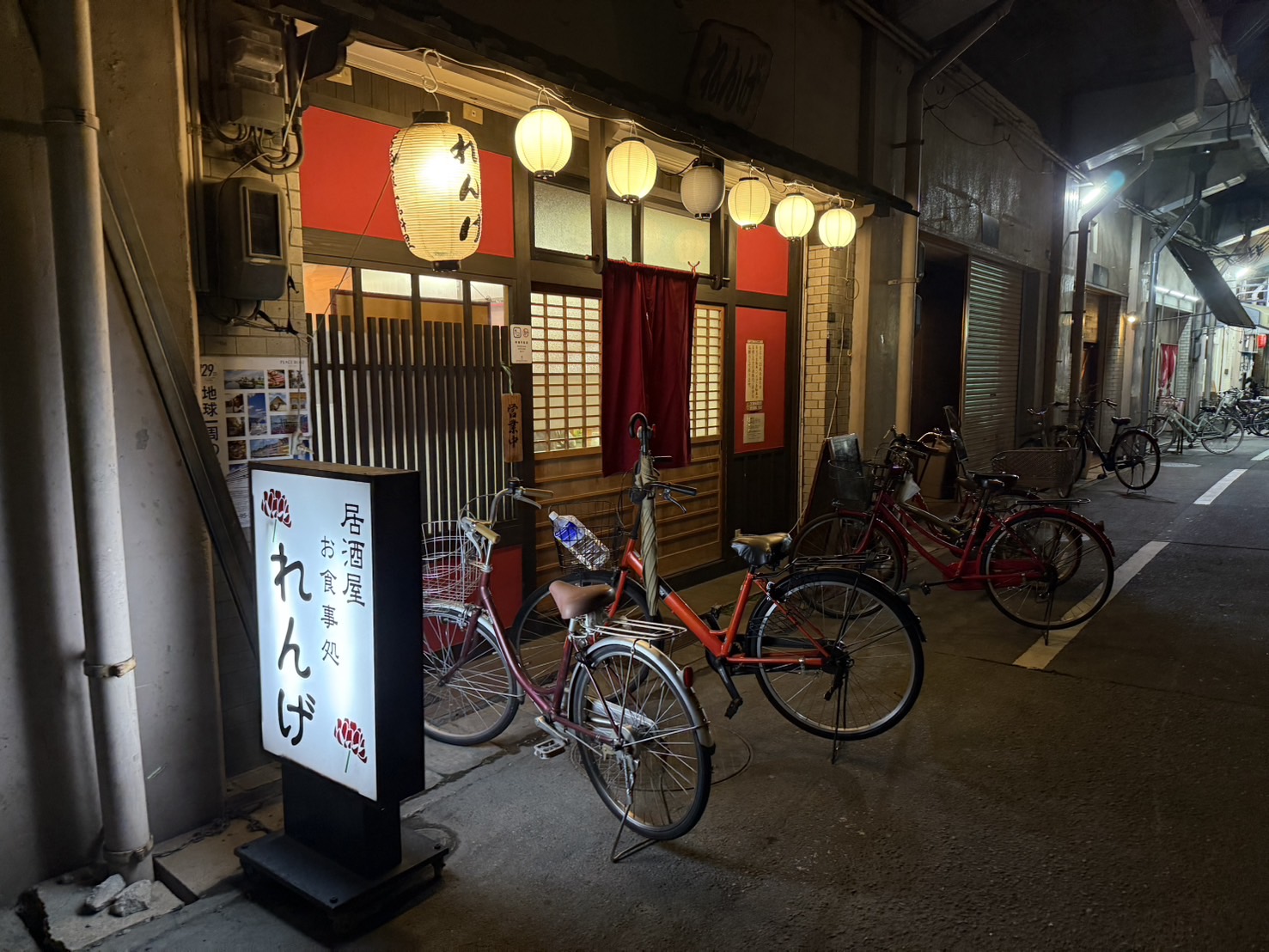 そしてその後はいつも祭りの際に御祝儀をいただいているJR鴫野駅の高架下、八番街にある居酒屋れんげさんへ。
