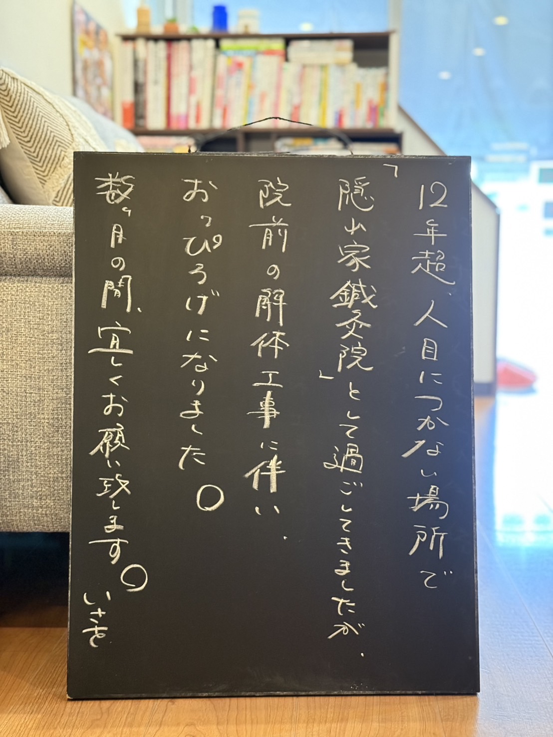 12年超続けてきた「 隠れ家鍼灸院 」はしばしの間、鳴りを潜める形となりました。笑