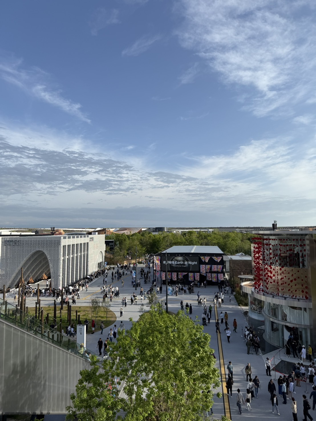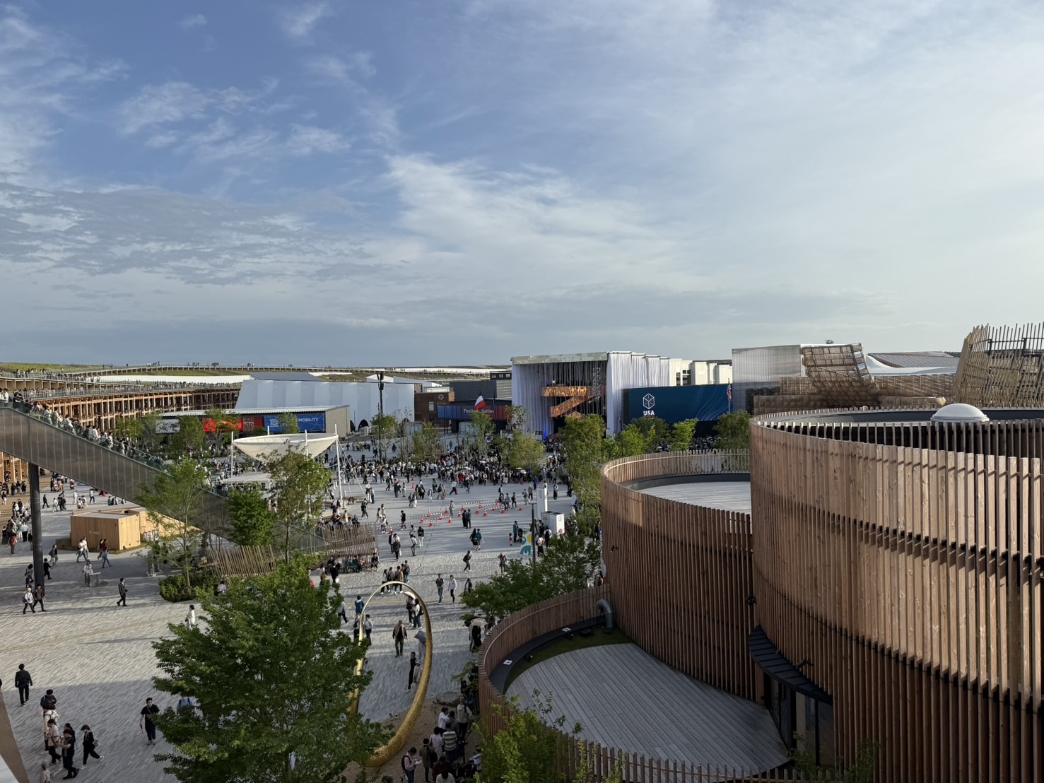 今まで歩いていたところがこんなに広かったんだと改めてスケールの大きさに気付かされるとともに、各国のパビリオンの形状がさまざまでカッコいいなと感じました。