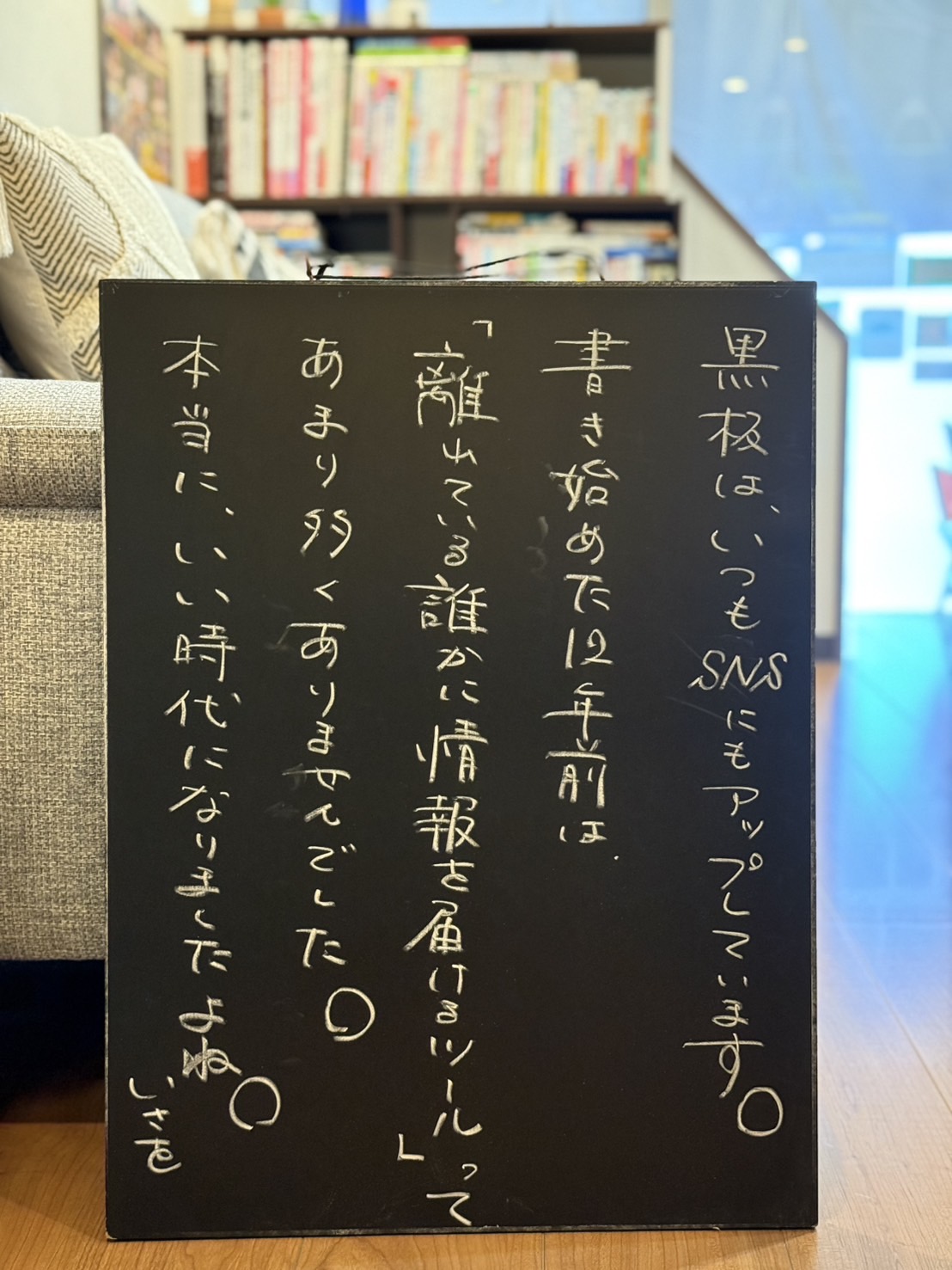 今はこの黒板やブログからご予約をいただいたり、取材やテレビ出演のご依頼をいただけるようになりました。