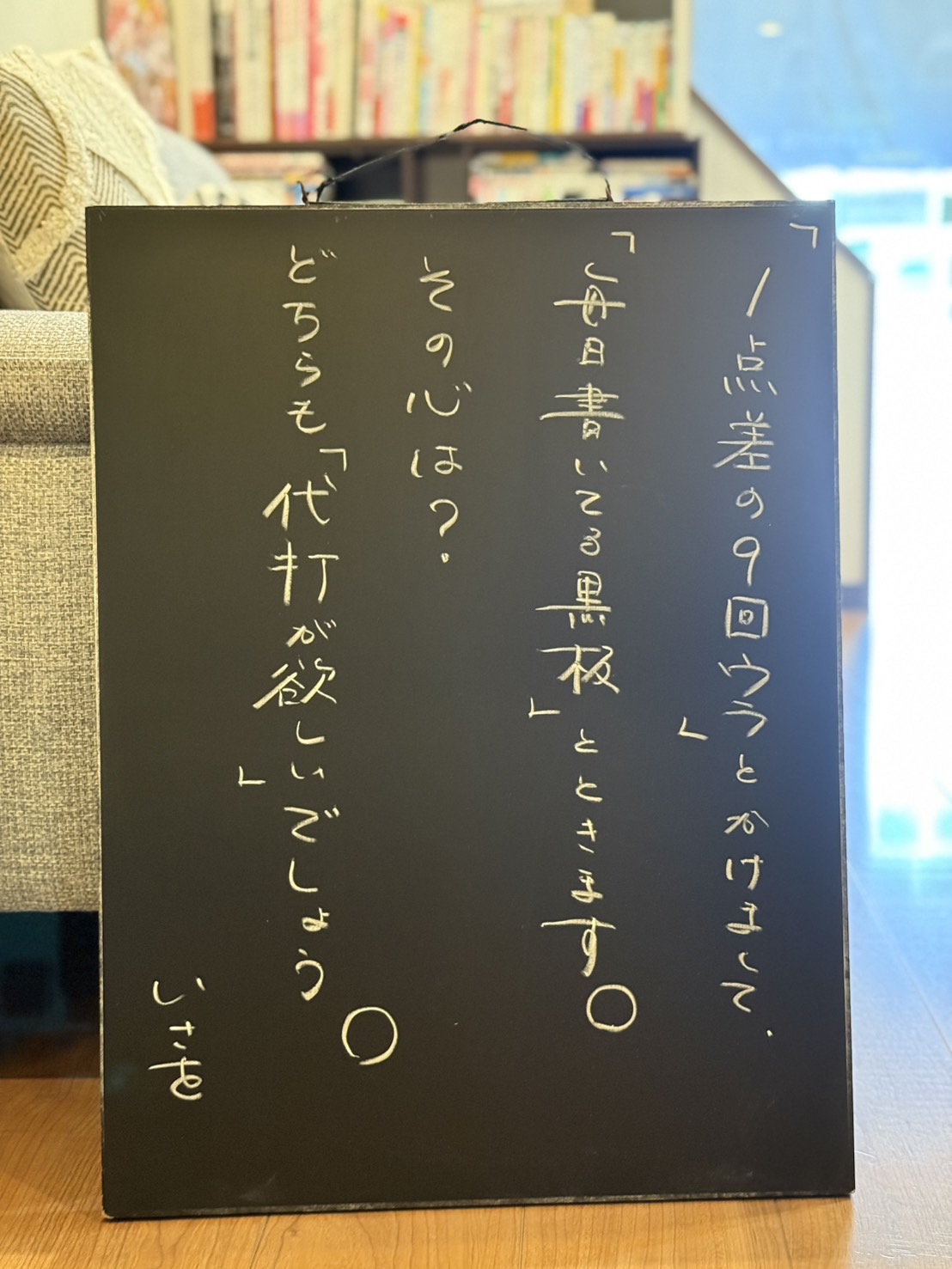 ブログはなんぼでも書けますが、黒板は文字数制限もあって難しいので、元阪神・八木さんのような「代打の神様」が居てくれたら嬉しいなと感じます。