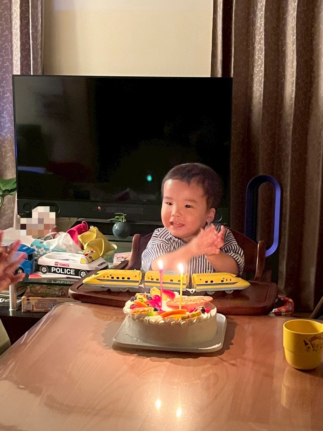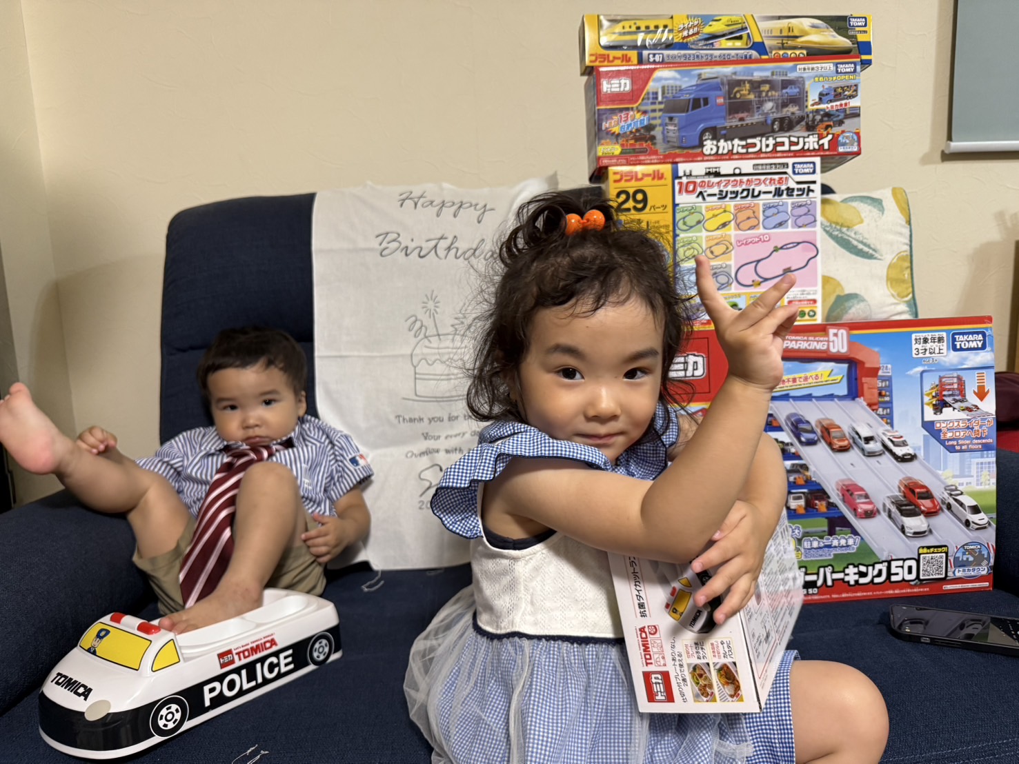 トミカやプラレールなど、乗り物が大好きな息子。みんなからたくさんプレゼントをいただいて大はしゃぎしておりました。
