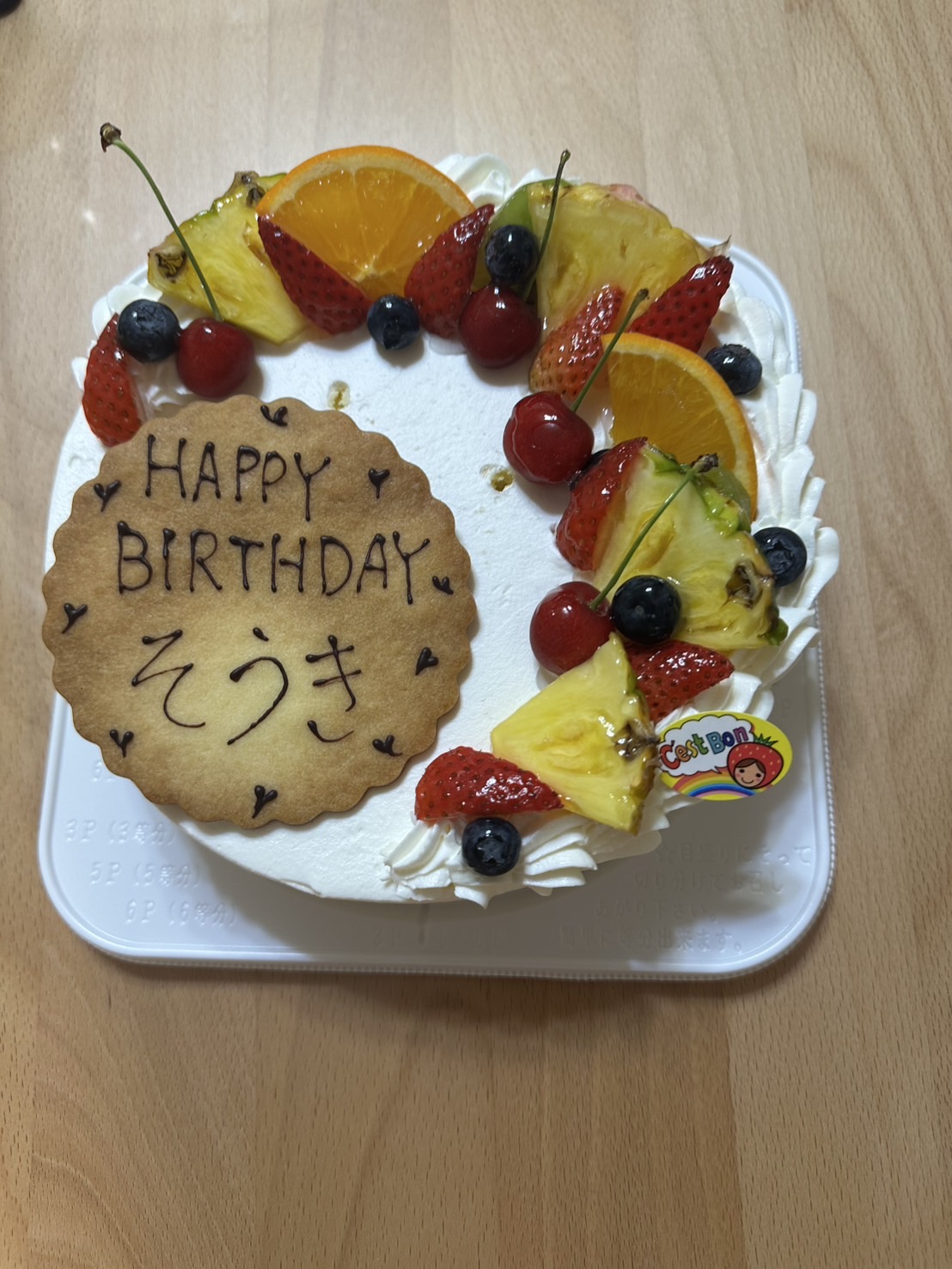 今回もお誕生日のケーキは、鍼灸院にもメンテナンスに通って下さっている京橋にあるパティスリーセボンさんにお願いしました。