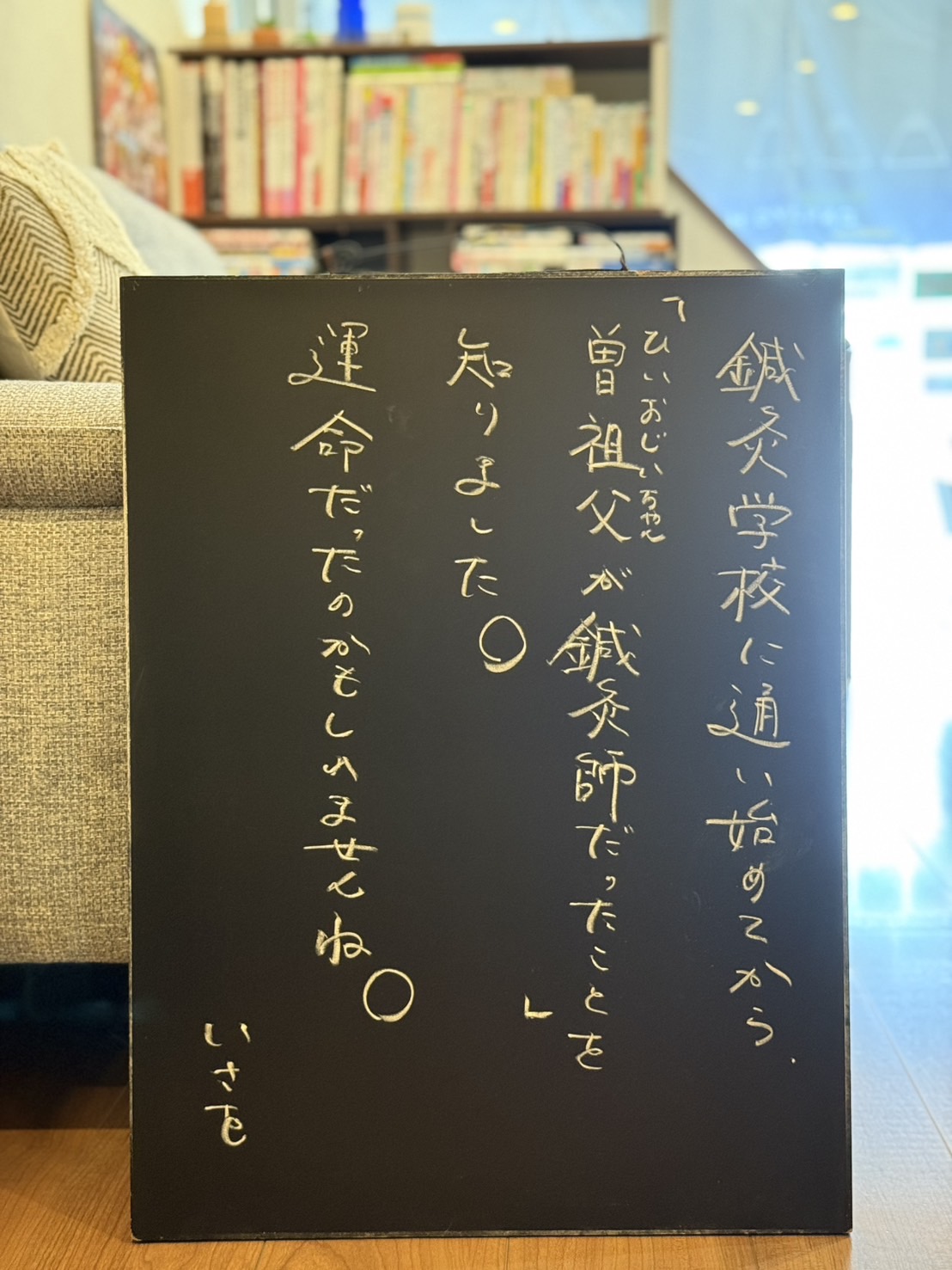 当院は開院から10月で丸13年になりますが、まだまだひいおじいちゃんの域には達せていないので、そうなれるよう頼って下さるお一人おひとりの方を大切にこれからも真心を込めて施術させていただきたいと思います。
