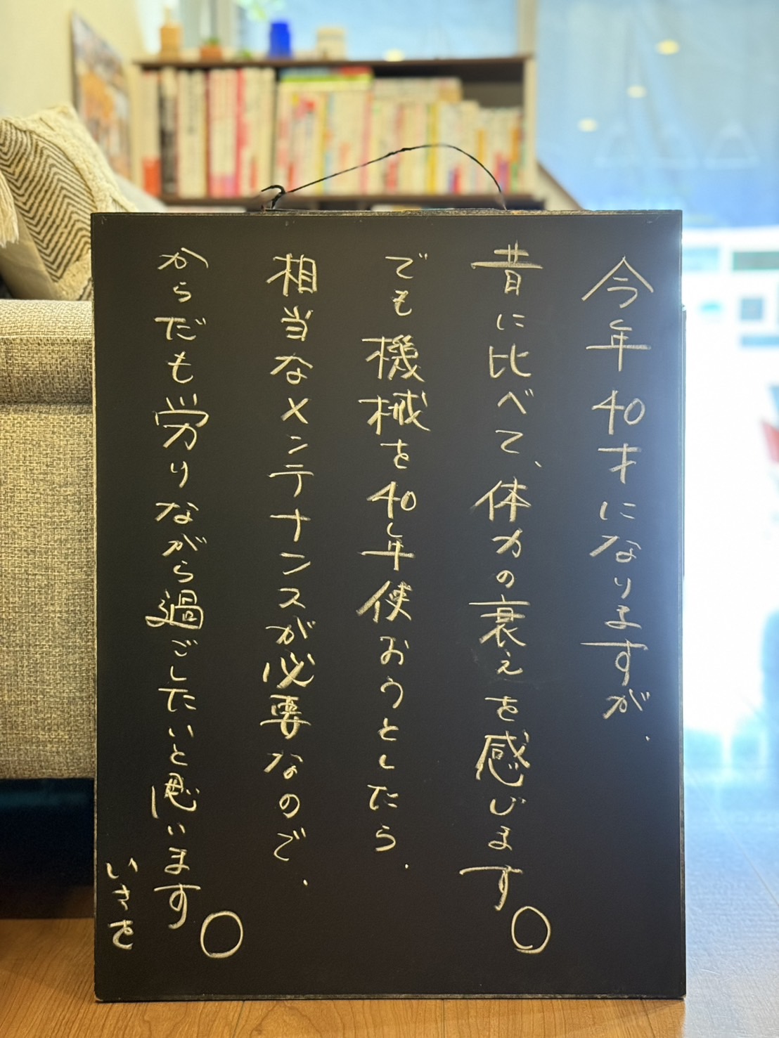 10代、20代と当たり前のように元気に動けてしまったので、なかなか気持ちや思考を切り替えるのは難しいですが、いつまでも元気に動き続けられるようからだにも目を向けながら無理なく過ごしたいですね^^