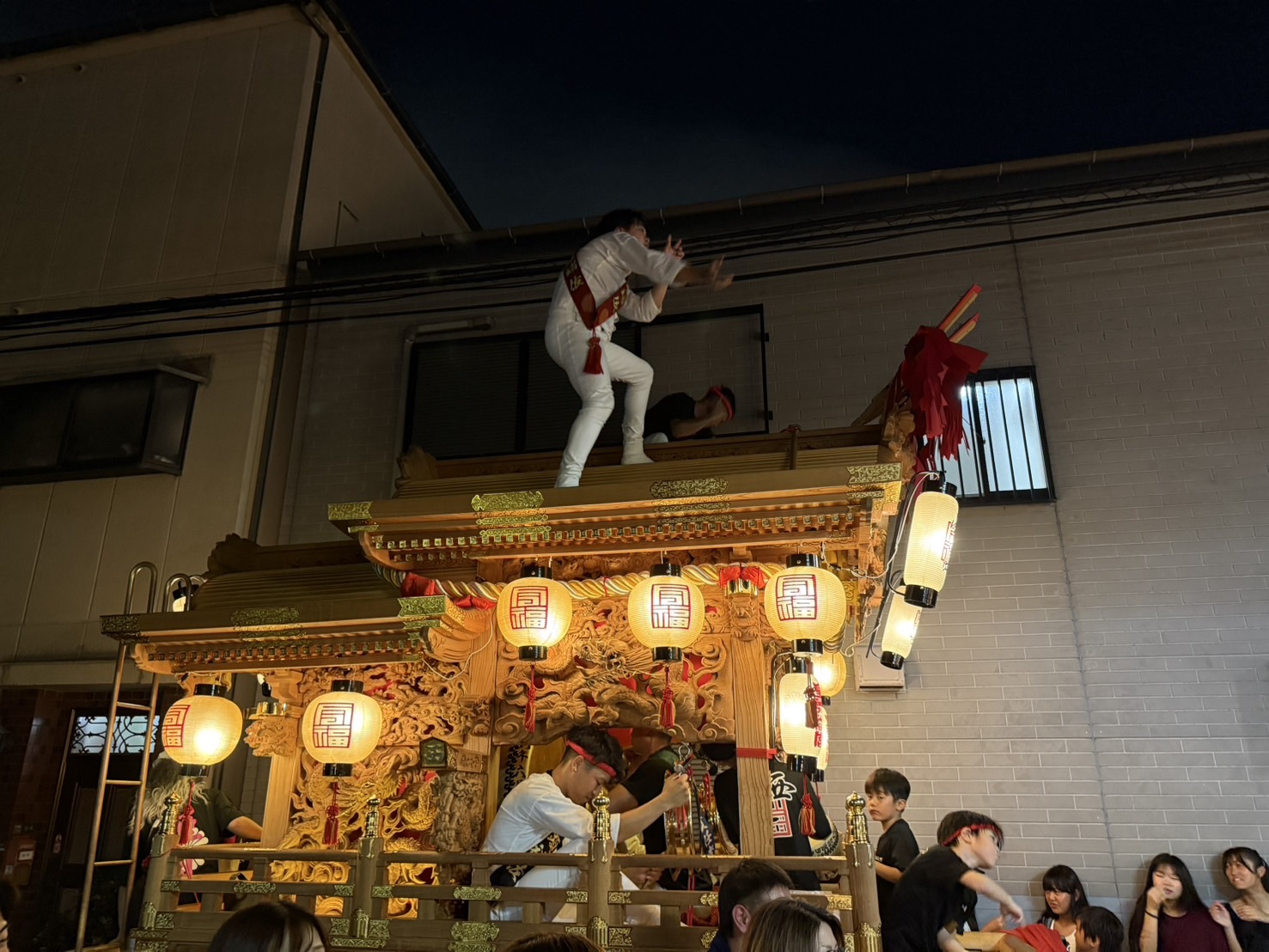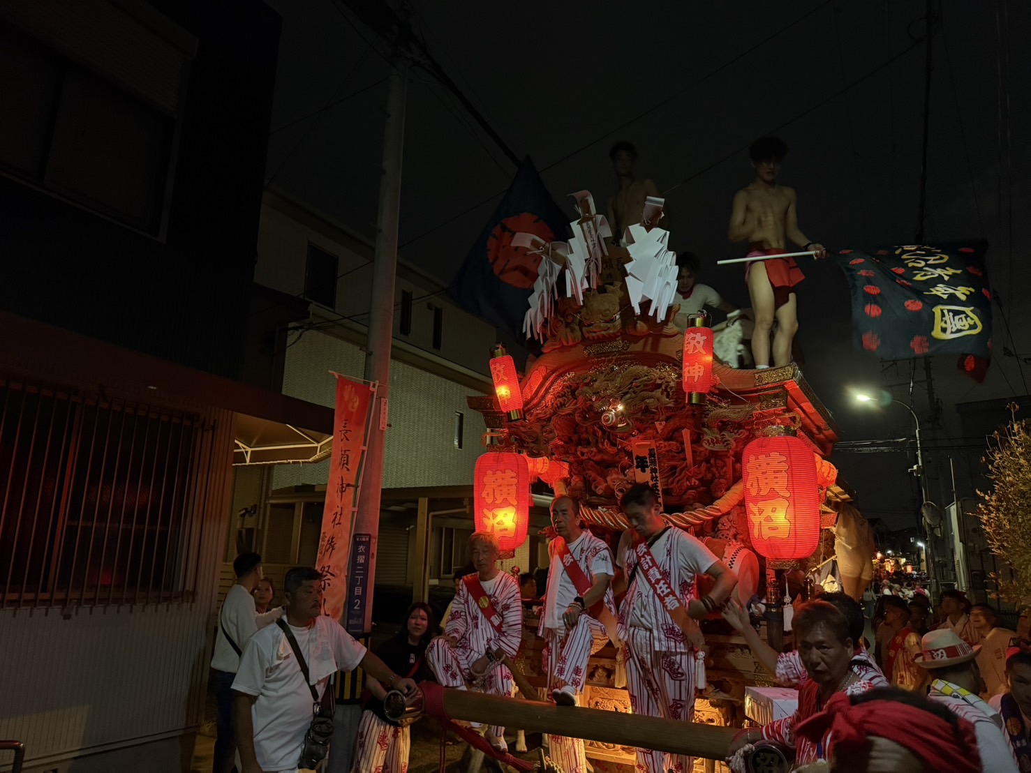 長瀬神社宮入りのタイミングでしたが、待機中にだんじりが一列にならび、ゆっくりだんじりを眺めることが出来ました。