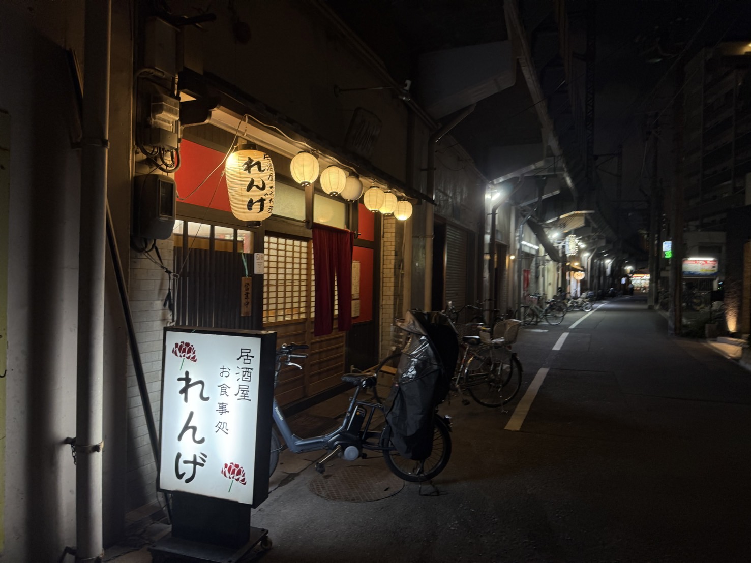 そしてその語は、いつもご祝儀をいただいている鴫野のガード下・八番街にある居酒屋れんげさんへ。