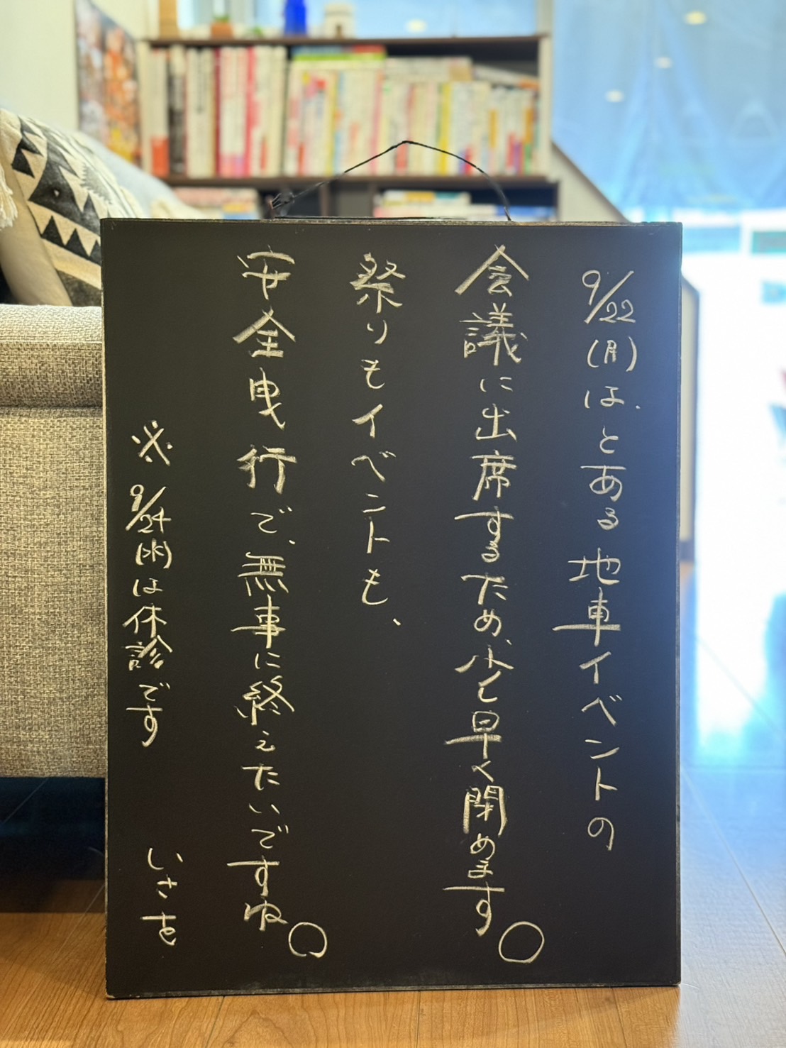 尚、9月24日(水)は休診となりますので、よろしくお願いいたします。