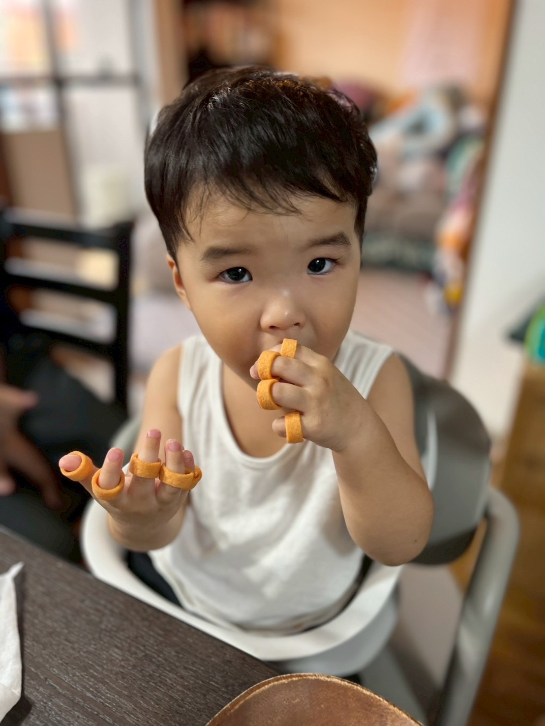 お昼寝を終えて起きてからご機嫌ナナメな長男坊は、お菓子でご機嫌さんに戻りました。笑