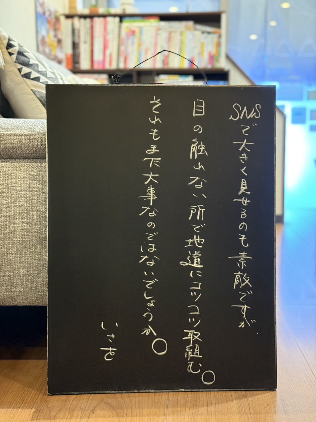SNSで大きく見せるのも素敵ですが、目の触れないところで地道にコツコツ取組む。それもまた大事なのではないでしょうか。