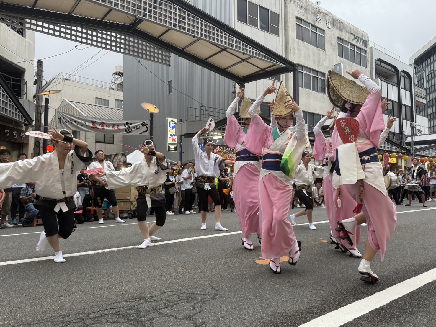 ちょうど到着したタイミングで、ボクたちが大好きな連、華舞遊さんが大岩食品前で演舞をおこなっていました。