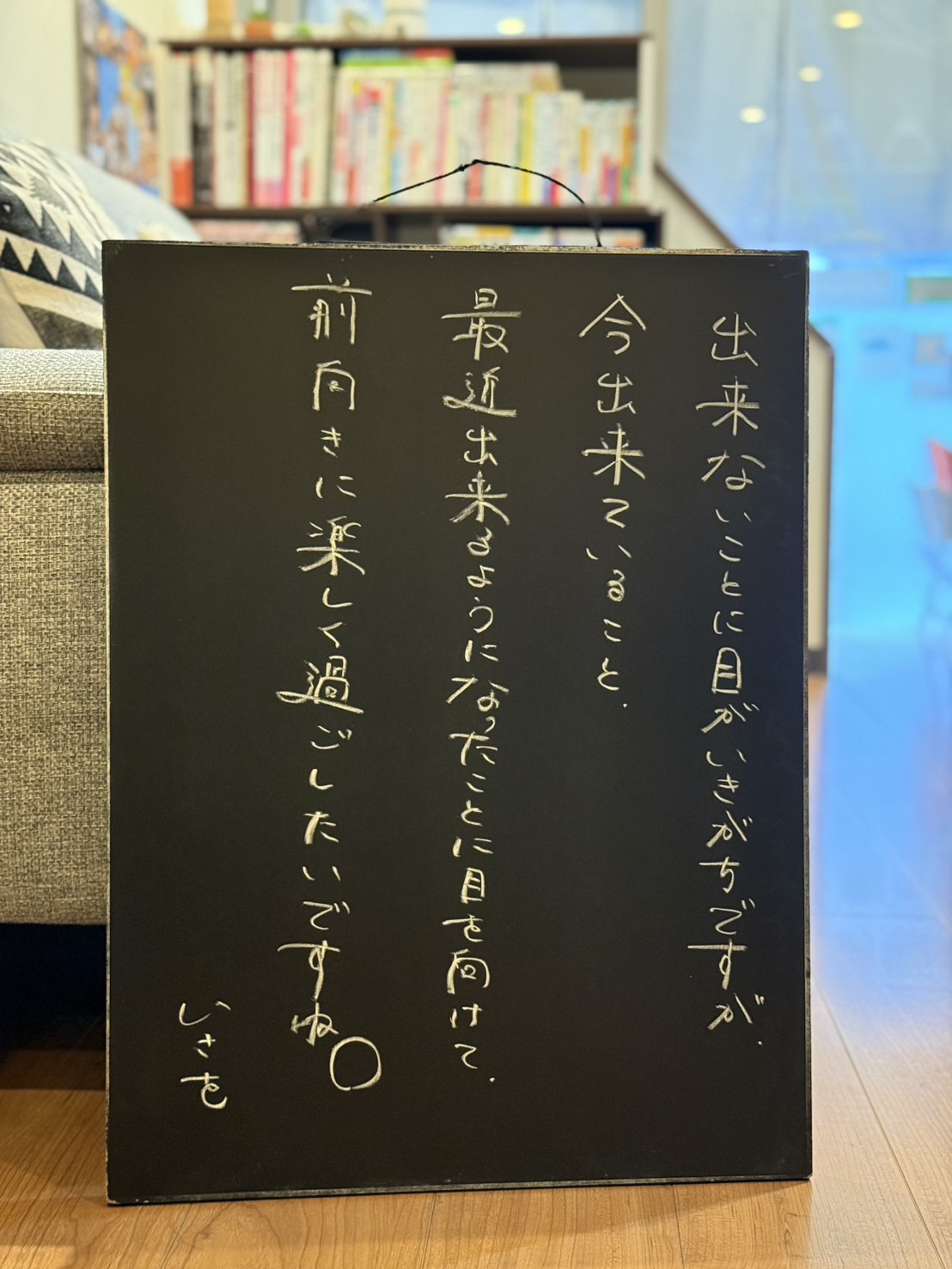 また悪くなるんじゃないかという不安な気持ちが勝ってしまうので難しいのですが、そんな時は「今すでに出来ていること」「以前に比べて出来るようになったこと」に目を向けていただきたいです。