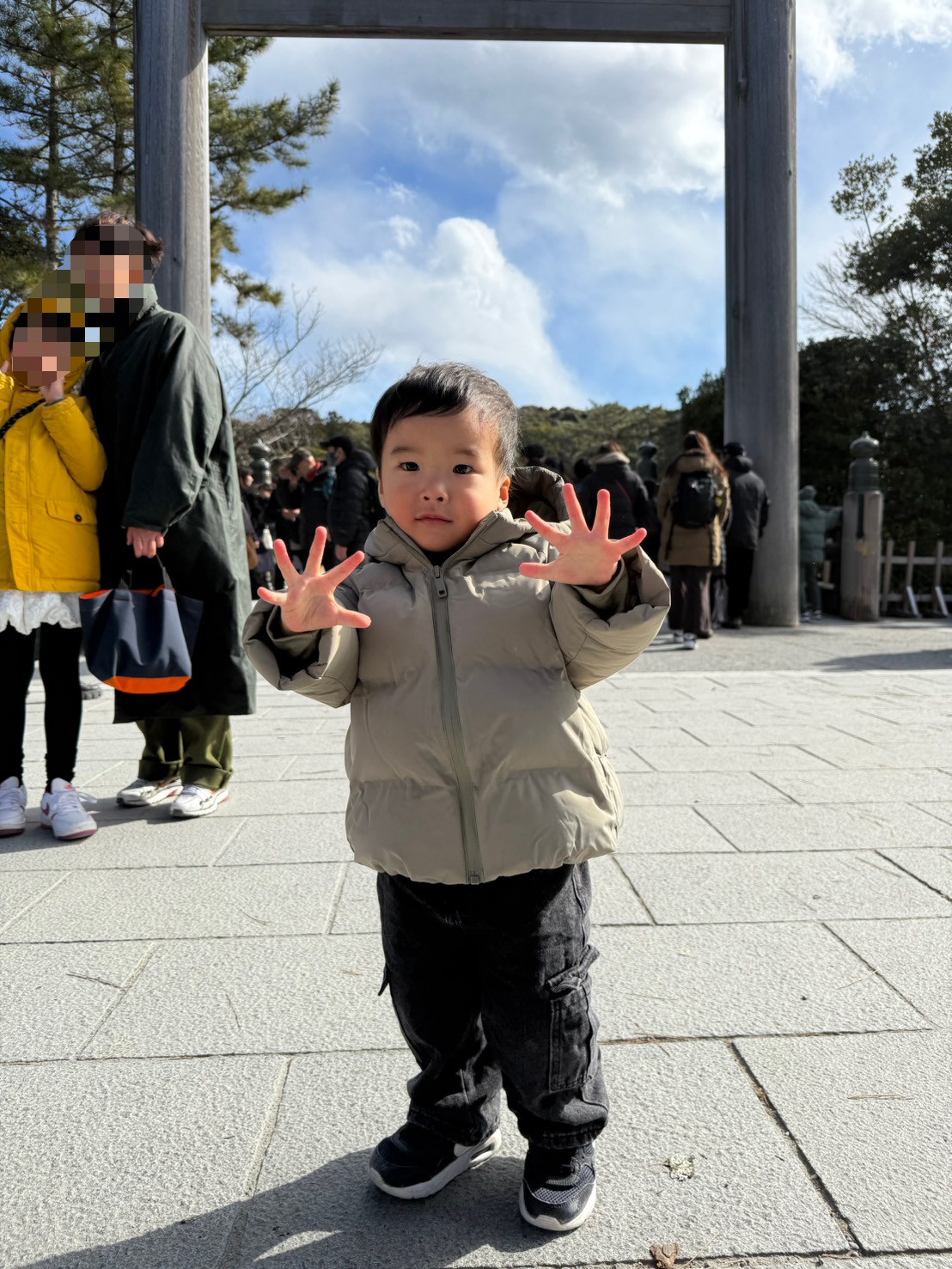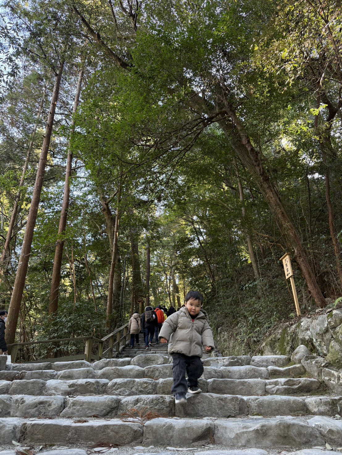 もうすぐ2歳7ヶ月になる長男坊の口癖は「じぶんでいける!!」なのですが、今回も外宮・内宮のほとんどの道を一人で歩き、なかなかの段差の階段の上り下りもまわりの方に応援・心配されながら力強く歩いていました。
