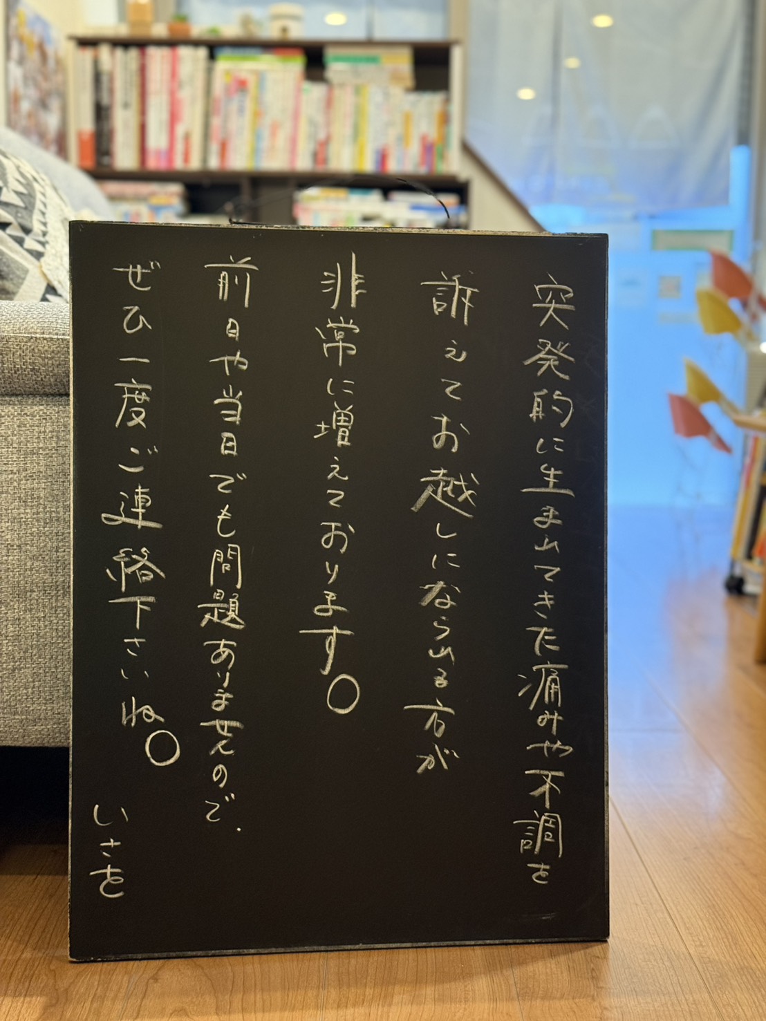 そんな時がもしやってきてしまった場合、前日でも当日でも構いませんので、ぜひ一度お声掛け下さいね。